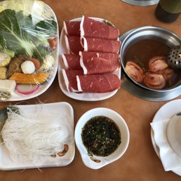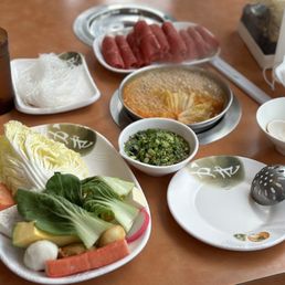 Great place to fulfill my hotpot cravings. This is a simple, minimal frills, straightforward hotpot place. Soup base is basic chicken broth, but they do offer other options. I love their sauce bar. Their house soy sauce is really good. Veggies are clean and fresh, meats and fish are good too. Service is quick and they refill your pot when they see it getting low on soup. Would definitely come back when I want a simple hot pot experience.